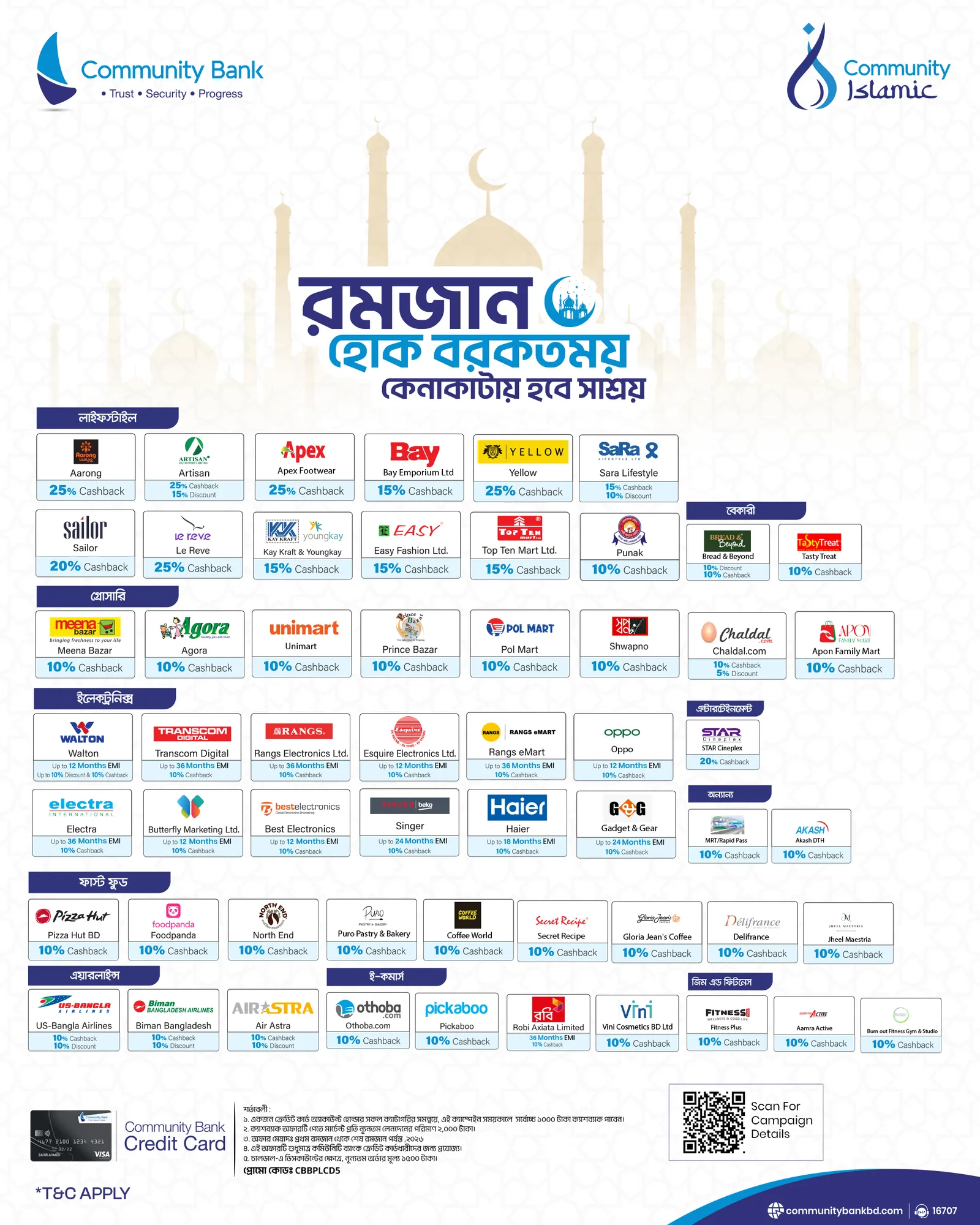 - Each Credit Card Account holder can avail maximum cashback BDT 1,000 from all categories during this campaign period