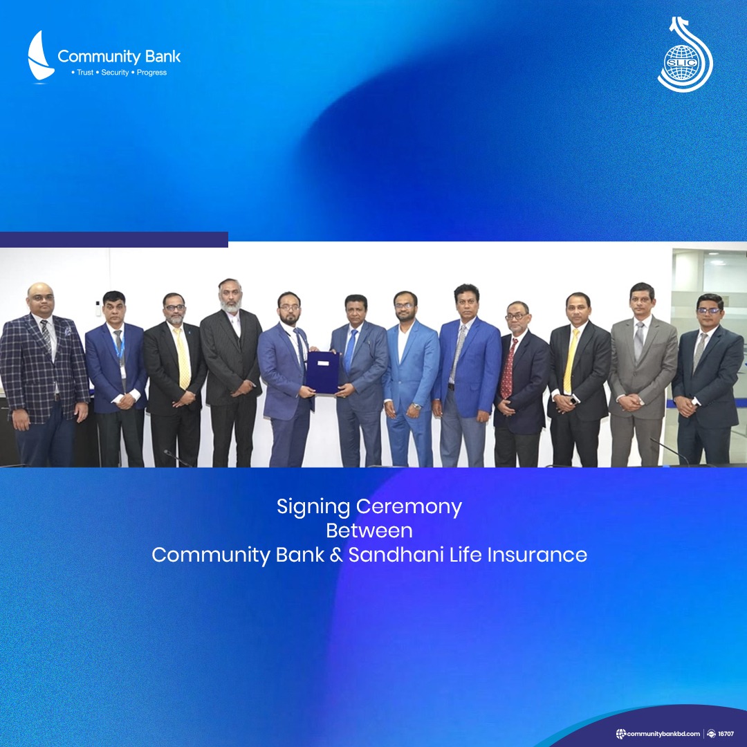 The agreement was signed at the head office of Community Bank Bangladesh PLC. Mr. Kimiwa Saddat, Managing Director (Current Charge) of Community Bank Bangladesh PLC. and Mr. Nemai Kumar Saha, Chief Executive Officer of Sandhani Life Insurance Company Ltd. signed the agreement on behalf of their respective organizations.