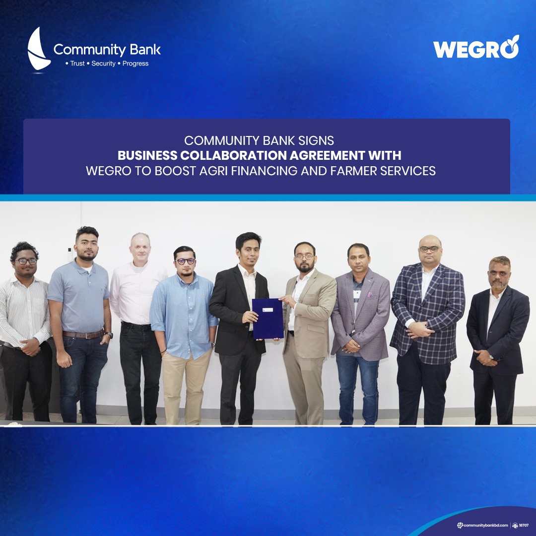 Dhaka, Bangladesh – October 30, 2025 – Community Bank Bangladesh PLC has signed a ” Business Collaboration Agreement” with WeGro Technologies Limited to extends agricultural services to improve the lives of the farmers and agricultural MSMEs.