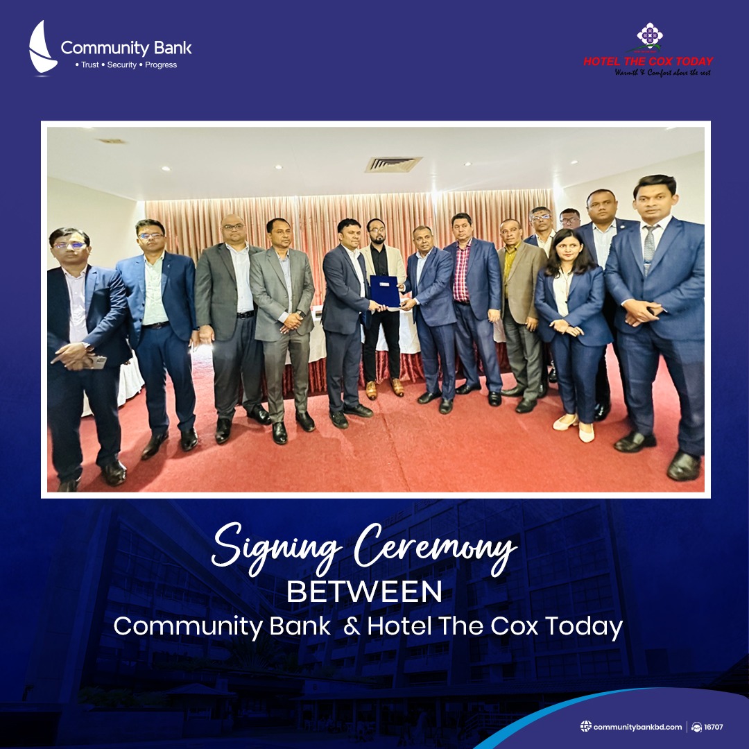 Zahir Ahmed, Head of Cards, Community Bank, and Mohammad Abu Taleb Shah, Assistant General Manager, Hotel The Cox’s Today, signed the agreement on behalf of their respective organizations.